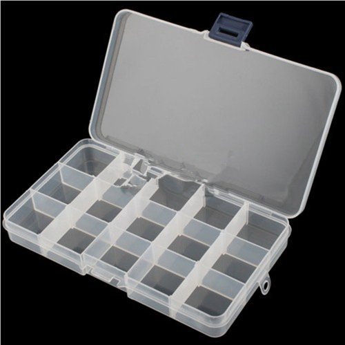 Adjustable 15 Compartment Plastic Storage Box Jewelry Earring Tool Container (transparent)